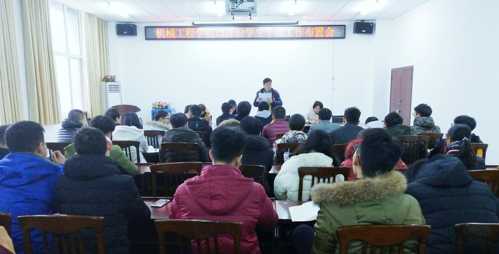 (机械学院 通讯员 张磊) 12月10日中午,伟德国际1946bv官网在工科楼408会议室召开12月份员工干部大会。参与此次会议的人员有公司党委副书记王超、团委书记万倩怡、学工办主任李海、辅导员赵鸿雁及全体员工干部。