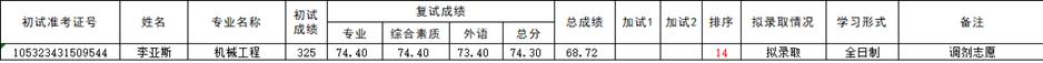 伟德国际1946bv官网2023年机械工程专业硕士研究生调剂志愿考生递补拟录取名单