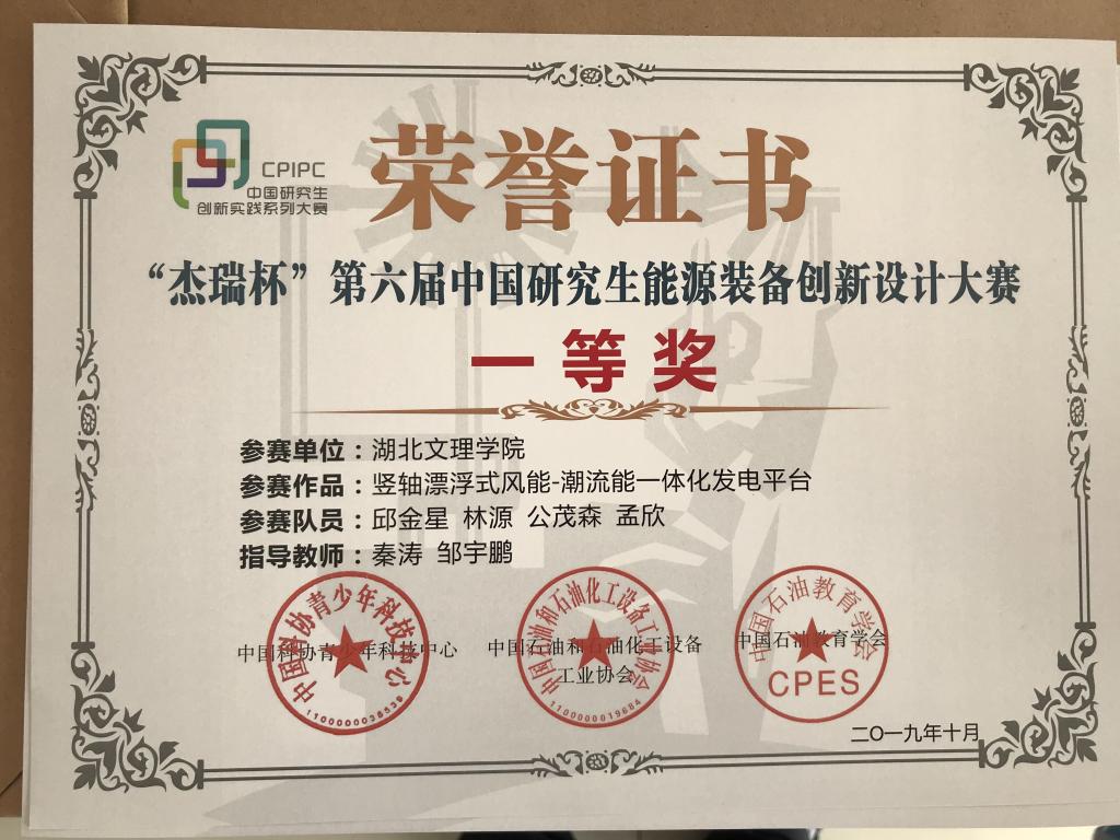 (机械学院 通讯员 秦涛)10月18日至20日,在中国石油大学(华东)举行的“杰瑞杯”第六届中国研究生能源装备创新设计大赛全国总决赛中,公司首届研究生邱金星同学表现优异,参赛作品《竖轴漂浮式风能-潮流能一体化发电平台》,经过演示、路演、答辩等环节的激烈角逐,喜获全国总决赛一等奖。伟德国际1946bv官网秦涛老师获评"优秀指导教师"。