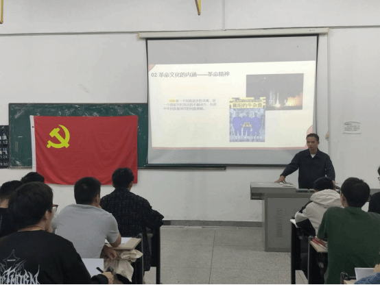 会议过程中,吴碧栓老师从革命文化的内涵、红色基因的传承、弘扬革命文化的途径几个方面展开,详细地讲解了革命文化、革命精神、革命传统、革命道德、革命文艺,以及“四个自信”(道路自信、理论自信、制度自信、文化自信)。