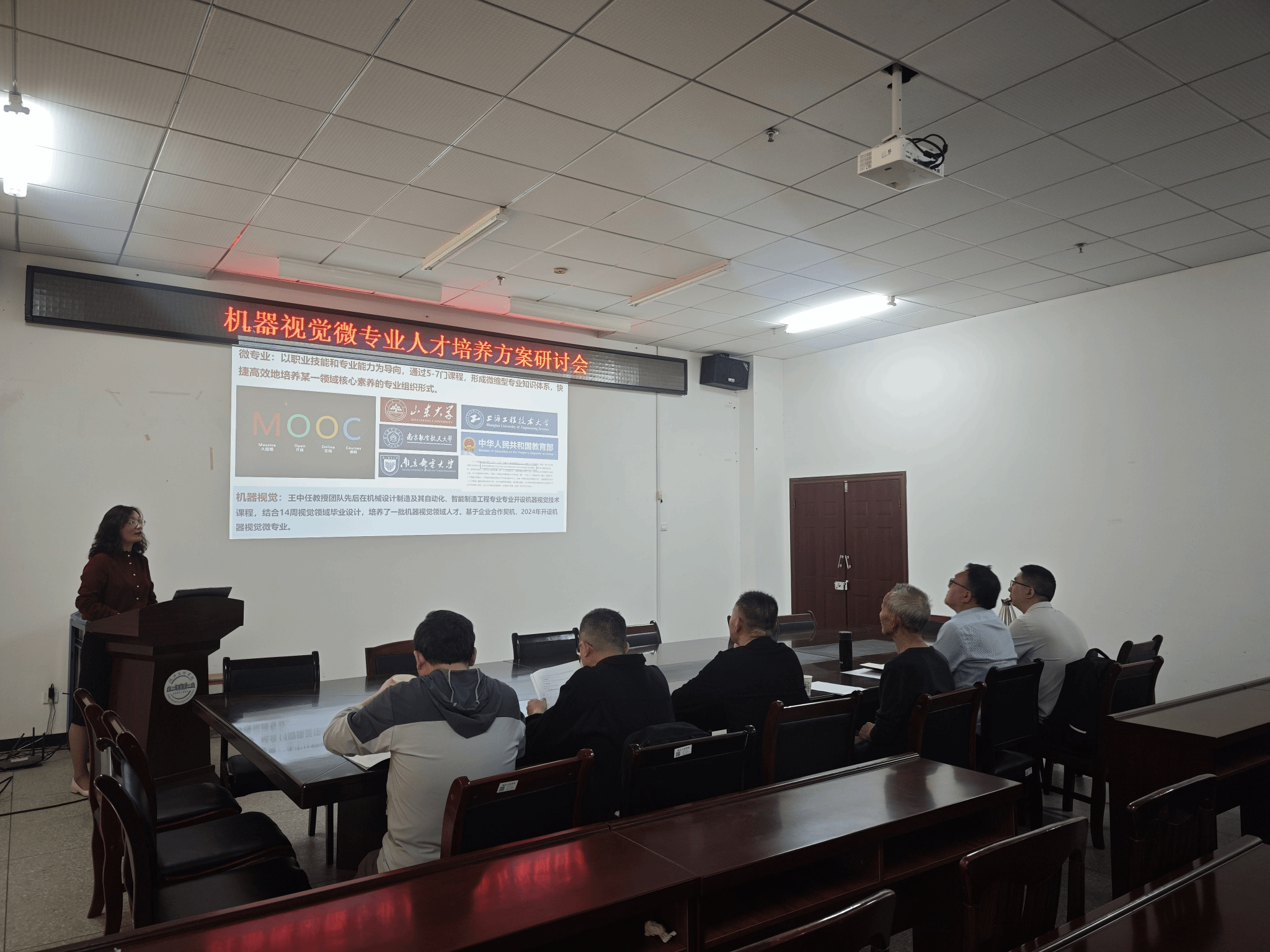 研讨会上,首先由赵荣丽老师对现行微专业人才培养方案进行解读,系统梳理了课程设置、教学成果及现存问题。伟德国际1946bv官网经理、微专业负责人王中任教授带领教学团队,与企业专家就改革方向展开深入探讨。专家结合新时代企业需求提出几点建议:1)深化产教融合:课程设计需强化企业实践应用,通过案例教学、项目实训提升员工技术转化能力;2)精准培养专长:在夯实技术基础的前提下,引导员工聚焦细分领域(如光学测量、工业检测),形成差异化竞争力;3)强化AI技术赋能:注重培养员工理解技术底层逻辑,推动AI在机器视觉领域的落地实践。