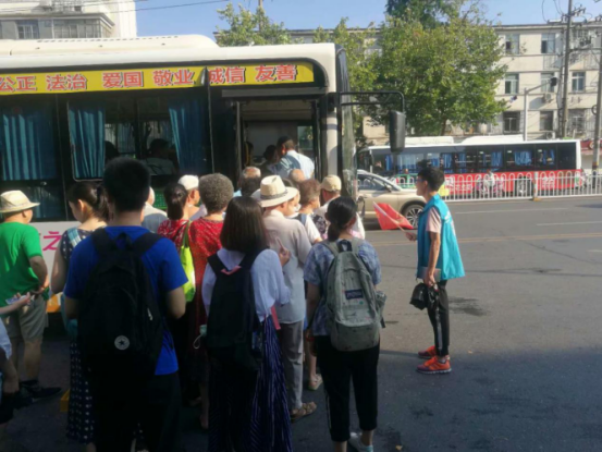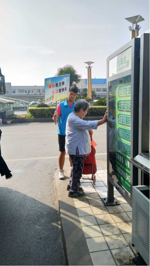 伴随着朝阳升起,志愿者们穿上蓝色的志愿服出发了。近几日,襄阳市最高温度可达35℃,大地被炙烤着,志愿者的汗水浸透了蓝色的志愿服。奉献个人,成就大家,文明有序的乘车,构建和谐的上车秩序。主席张磊等十五名志愿者分别在十字街,襄阳四中,人民广场,火车站四个地方引导市民主动排队,文明乘车。在火车站的员工会主席张磊顶着烈日,用手中的引导牌为老人遮阳,轻微举动,触动人心。团委副书记代均益说,看着日益渐好的上车秩序,内心很满足。志愿者徐薛莲,戴雪儿负责公交车上宣讲,活动后,宣传员徐薛莲感慨道:文明不仅仅是一个人的小事,而是一座城市整体的素质体现,她们伴随着开动的512公交车,耐心的向乘客宣传襄阳市文明20条,并且与乘客互动,听取乘客们关于襄阳市公交车如何变得更好的意见与建议。亲身践行“奉献,友爱,互助,进步”的志愿服务精神,服务市民。襄阳创文,湖文学子在行动。